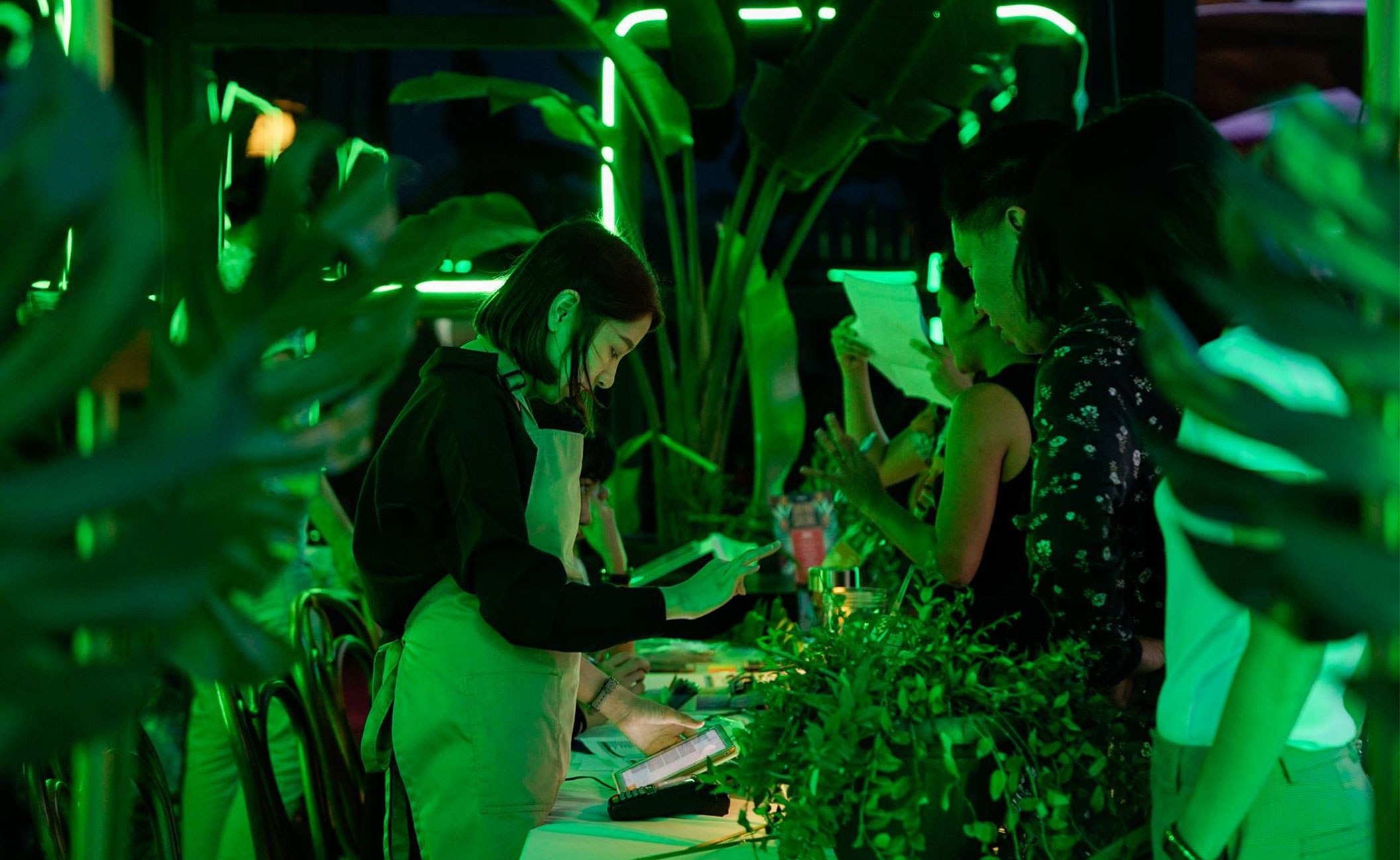 The branding was designed to mimic a night safari, creating an exotic feel throughout the indoor and outdoor spaces, combining fine food, experimental bar culture and nightlife.