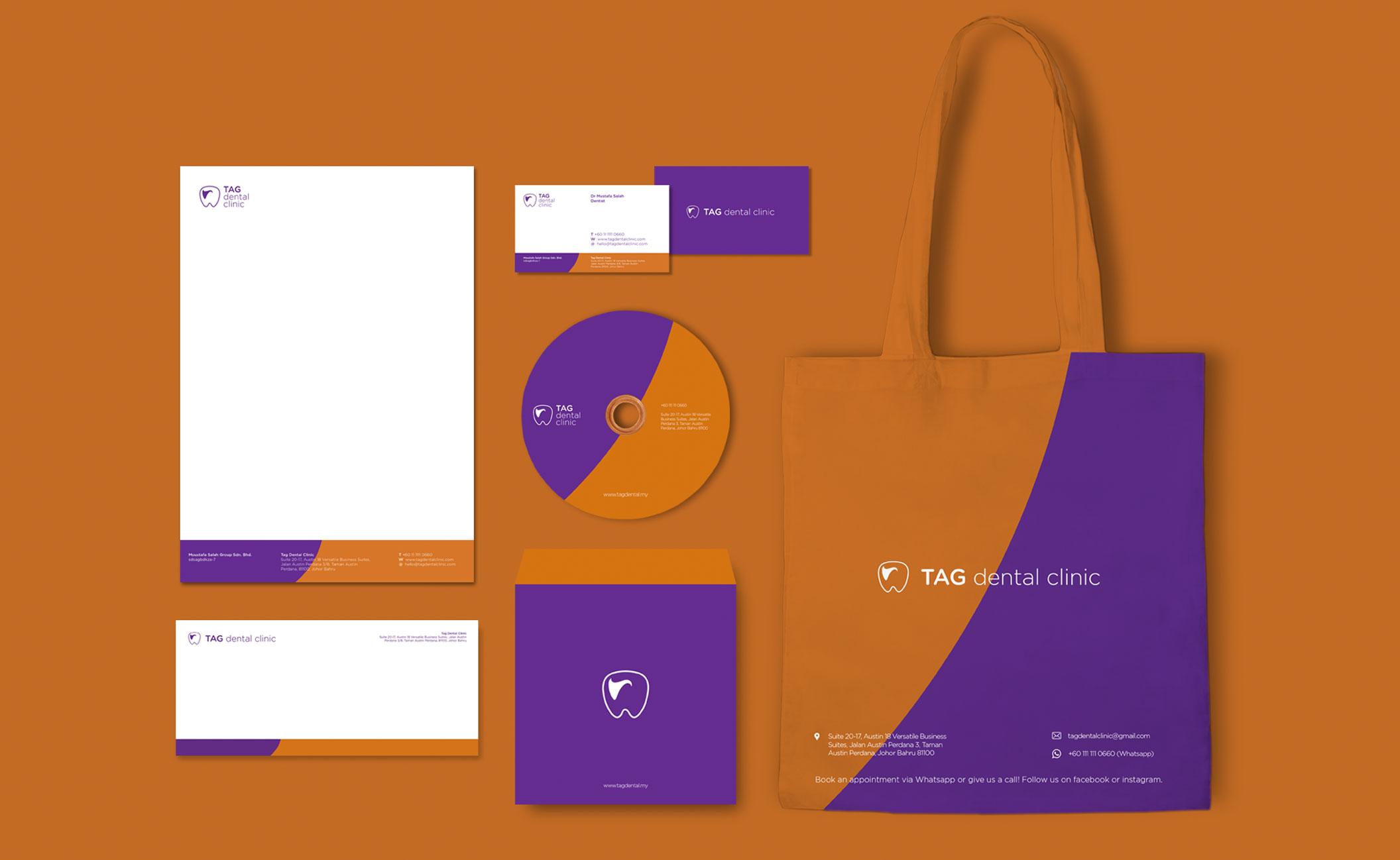 With fierce competition in the dental clinic market, our client needed a strong and compelling identity for his new practice. Located atop the Austin18 Versatile Business Suites in Mount Austin, TAG Dental Clinic specialises in orthodontics and aesthetic dental services.